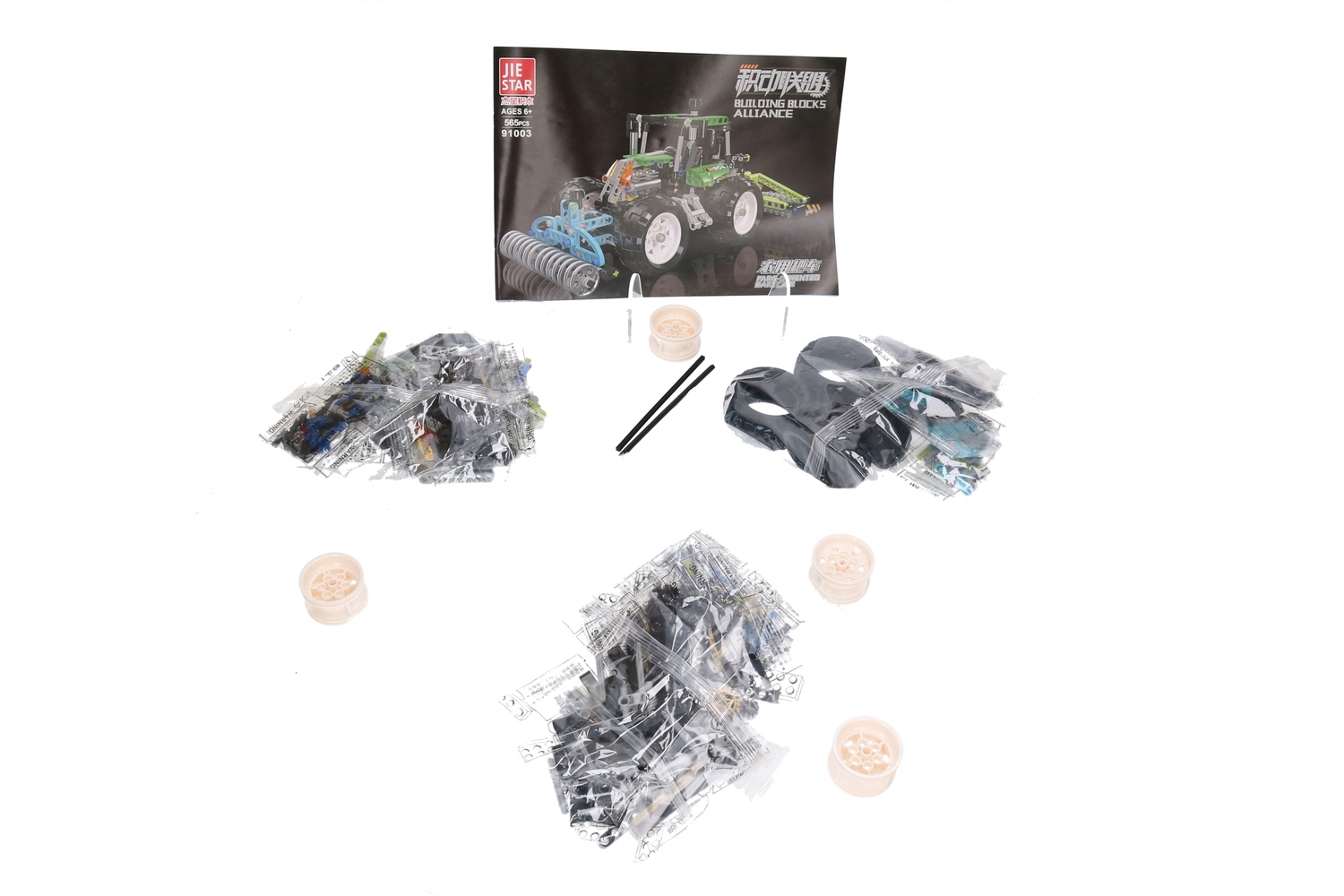 Zestaw składa się z 565 szczegółowo dobranych elementów, które pozwalają na stworzenie realistycznej i funkcjonalnej maszyny rolniczej.