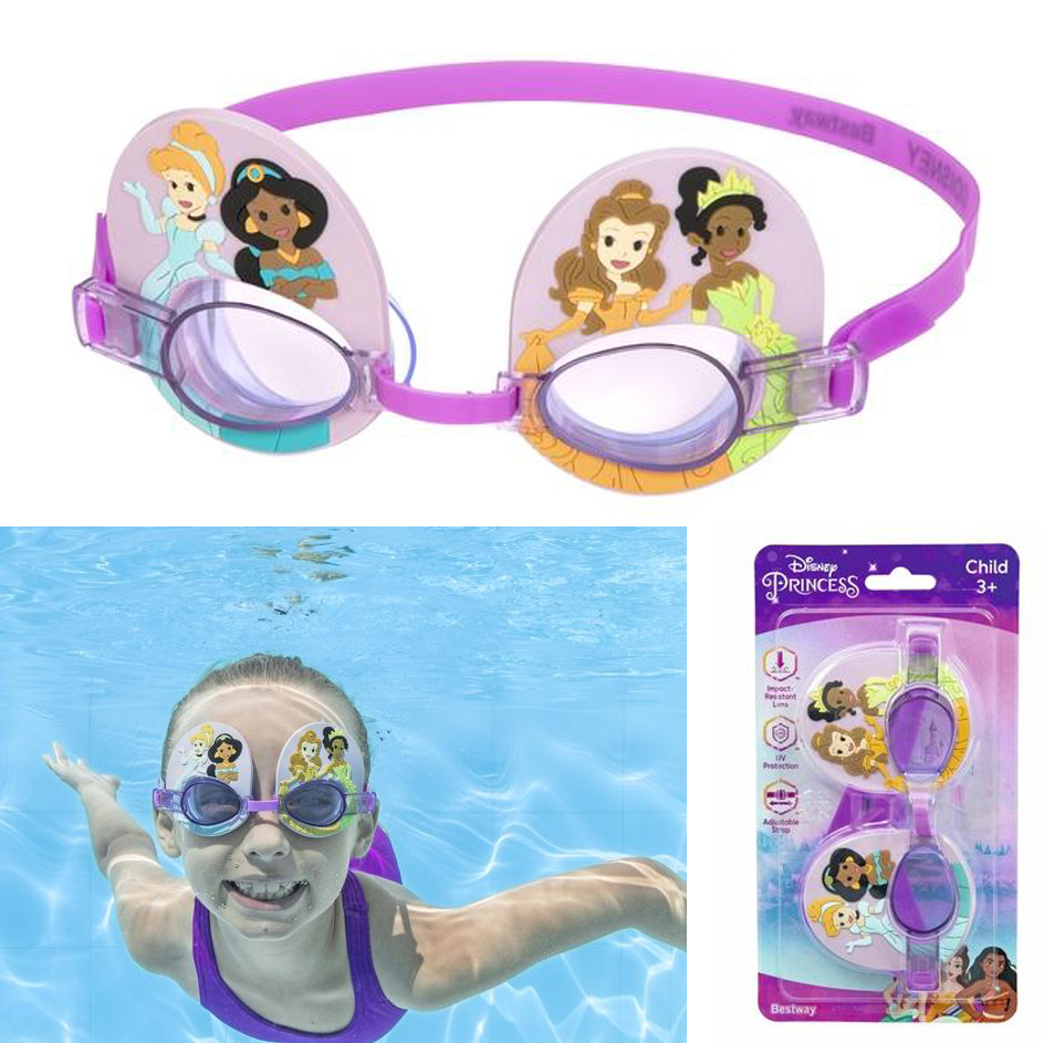 Daj swojemu dziecku radość z nurkowania pod wodą dzięki ulubionym okularkom do pływania Disney® Princess! Idealne dla dzieci w wieku od 3 lat. Okularki do pływania zawierają obrazy ulubionych księżniczek Disneya na zewnętrznej krawędzi.