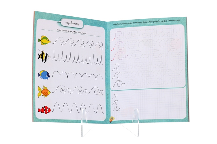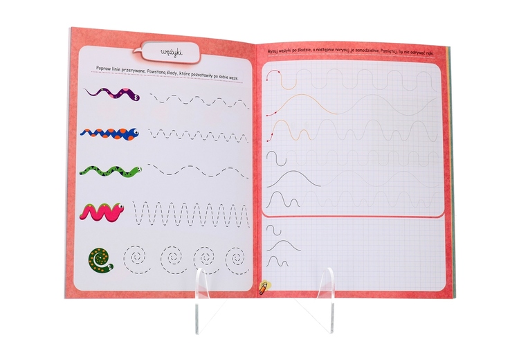 Przyjazne ilustracje oraz ciekawe zadania zachęcają do nauki rysowania szlaczków.