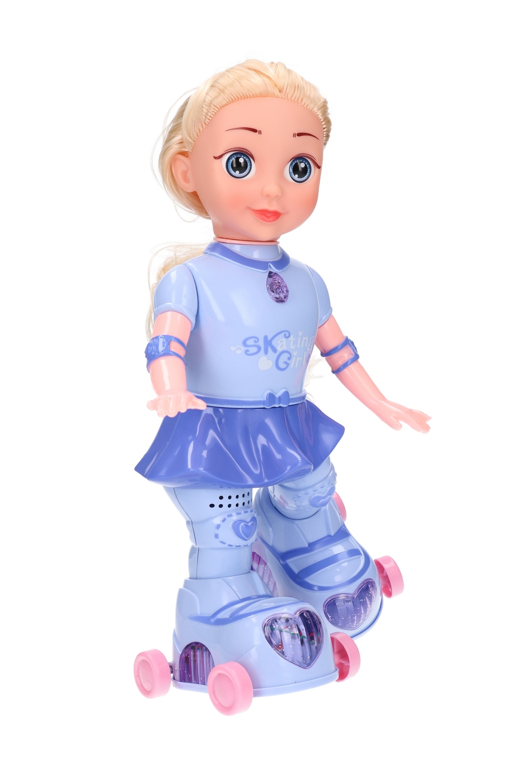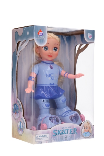 Lalka Skating Girl automatycznie porusza się na swoich wrotkach, zapewniając godziny wciągającej rozrywki.
