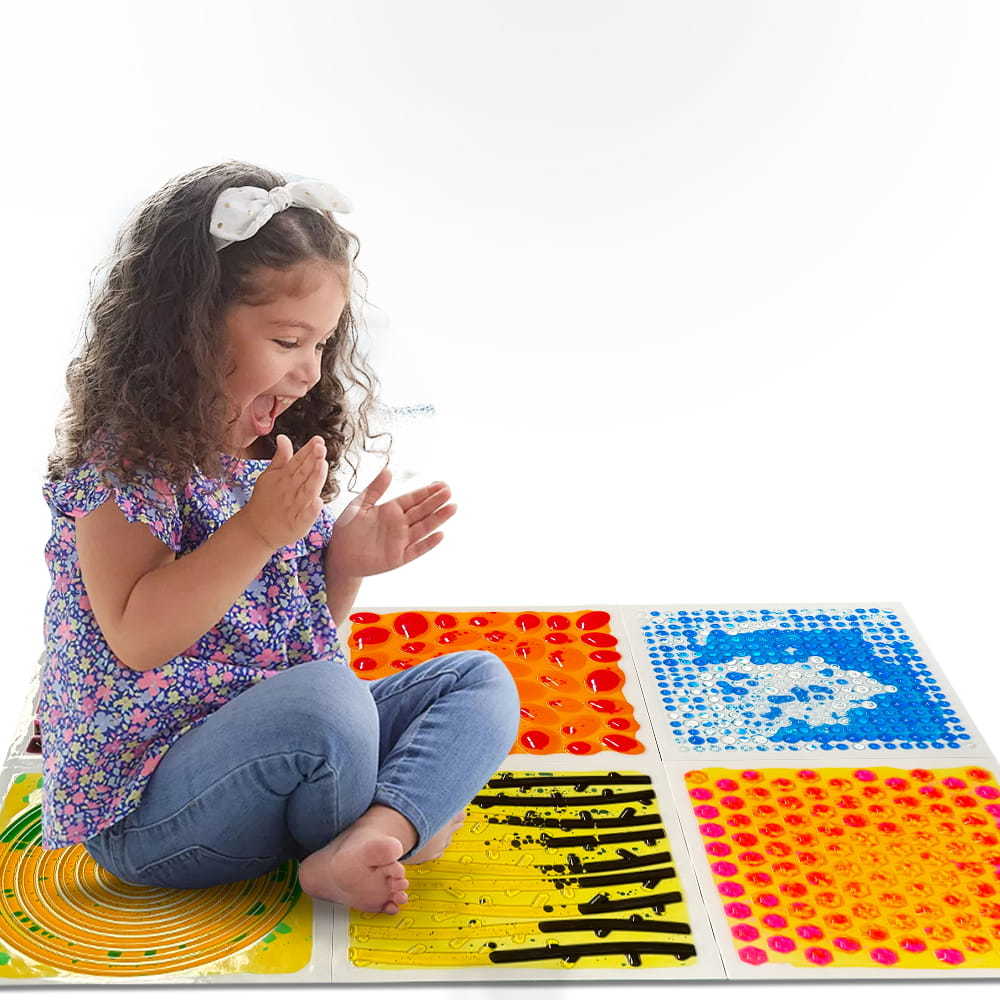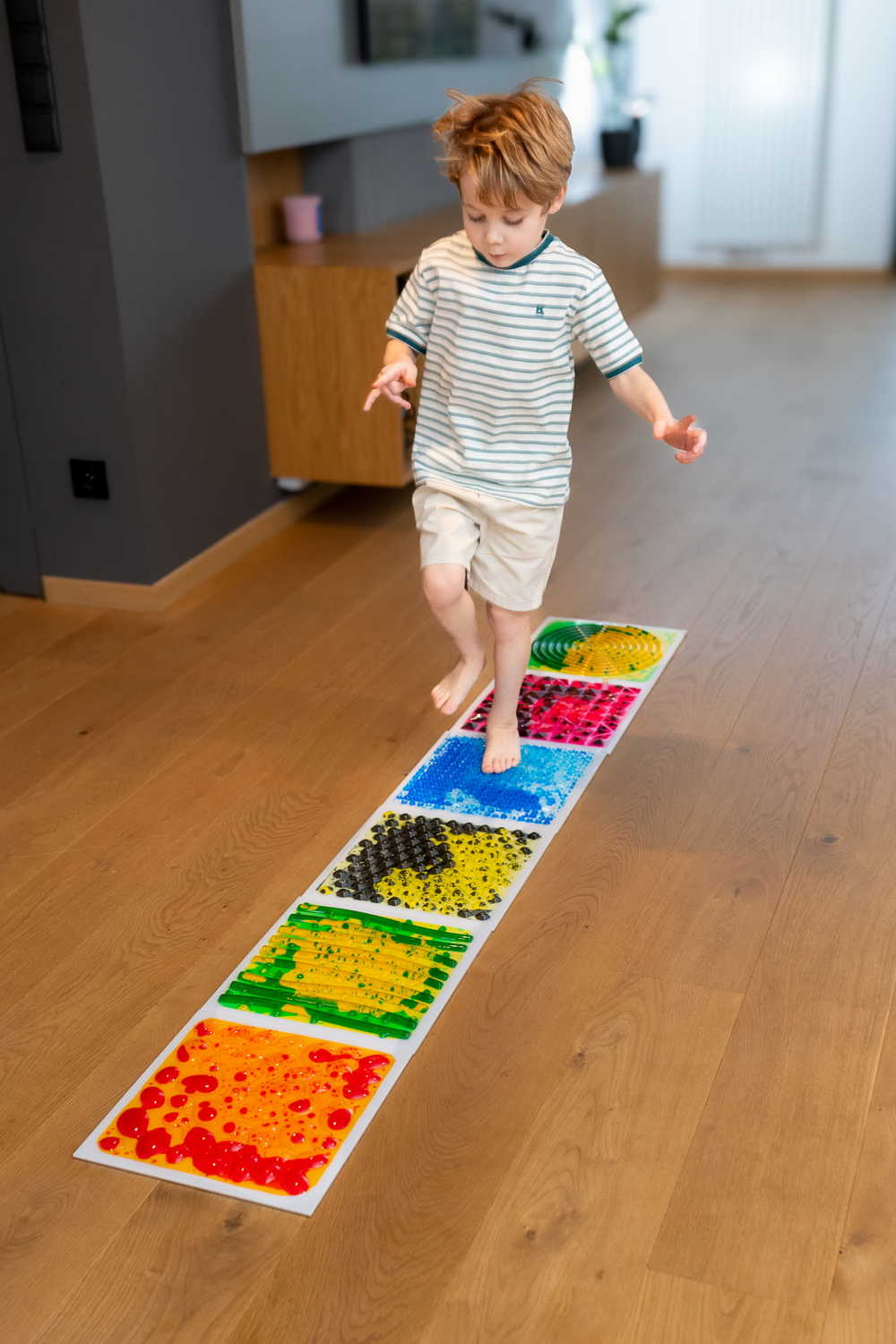 Fakturowe płytki sensoryczne z cieczą to połączenie zabawy, terapii i rozwoju – zaprojektowane z myślą o dzieciach potrzebujących wsparcia w obszarze integracji sensorycznej i motoryki.