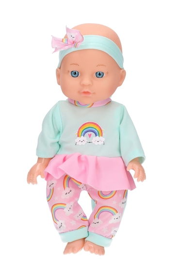 Tułów lalki oraz nogi i ręce wykonane są z plastiku a głowa z tworzywa gumowego.
