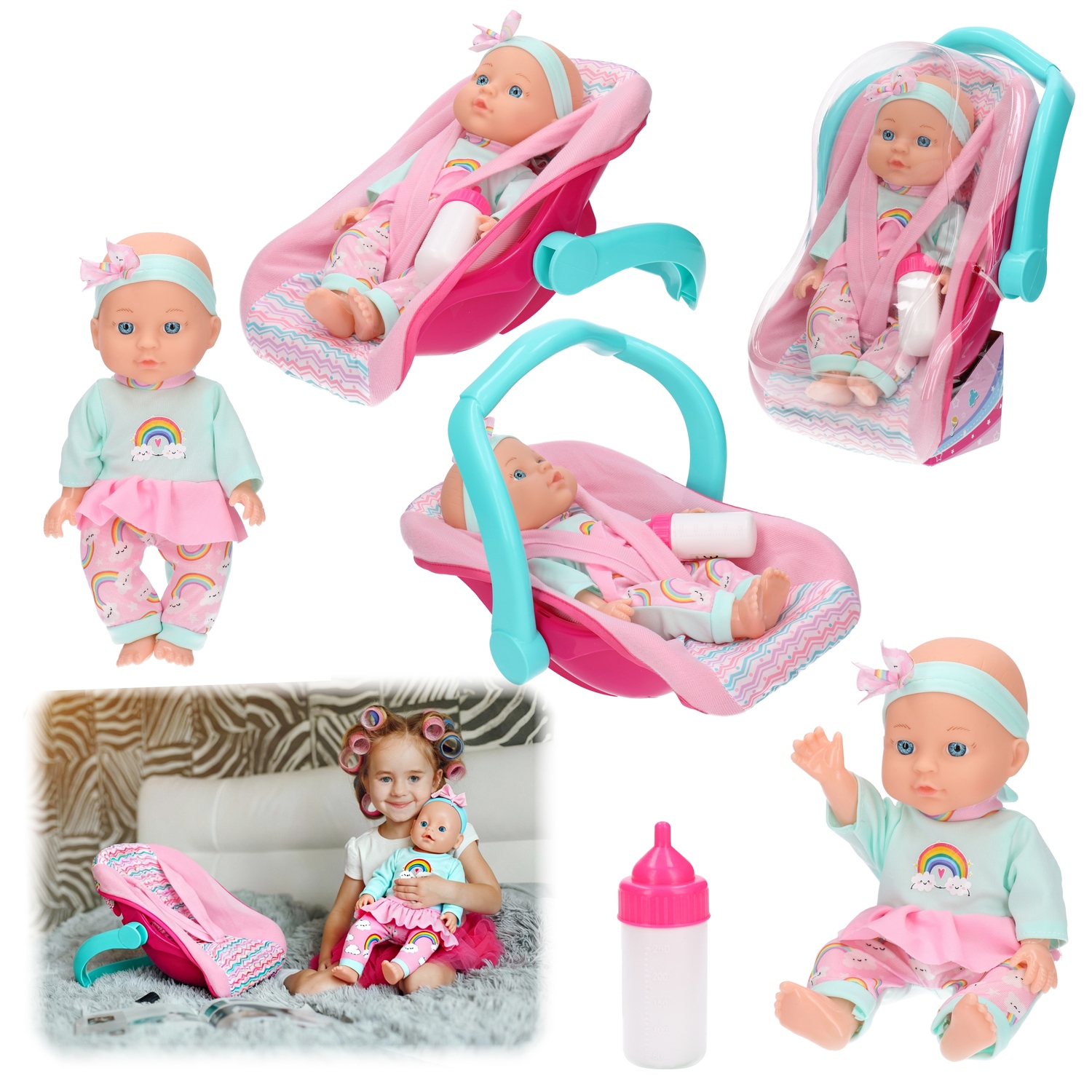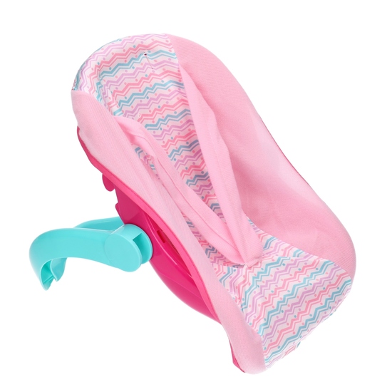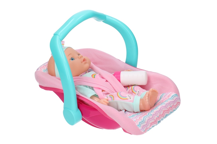 W zestawie też nosidełko z regulowanym uchwytem i pasami bezpieczeństwa do przenoszenia lalki czy do przewożenia jej samochodem.