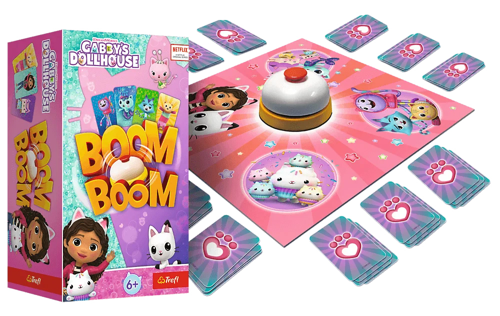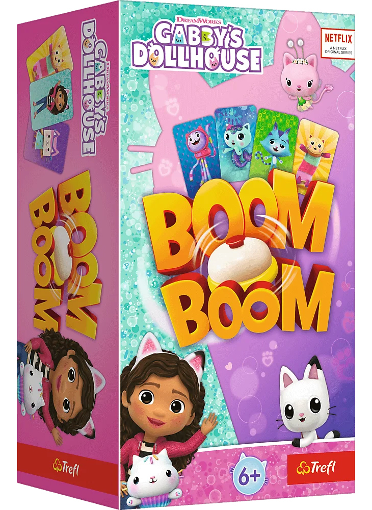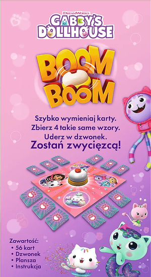 W Boom Boom gracze starają się zebrać identyczne karty z ulubionymi bohaterami bajki Koci Domek Gabi.